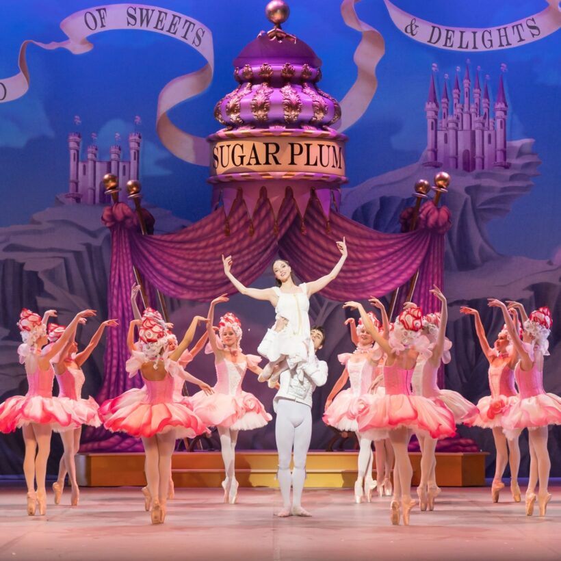Both choreographers and designer Dick Bird wanted to weave the tastes from the Land of Sweets and Delights throughout the ballet to better connect Acts I and II. For that reason, you might spot some of them in the street market and party scenes in the first half of Nutcracker, along with the magical frosted sugar plums.