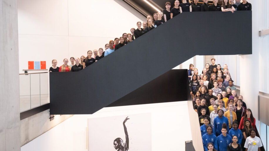 Dance Journeys Digital features students from Bishop Challoner Catholic Federation of Schools, Copthall School, and Friern Barnet School, alongside ENBYouthCo, performing in a multitude of spaces in and around the English National Ballet’s new home, the Mulryan Centre for Dance, in East London.