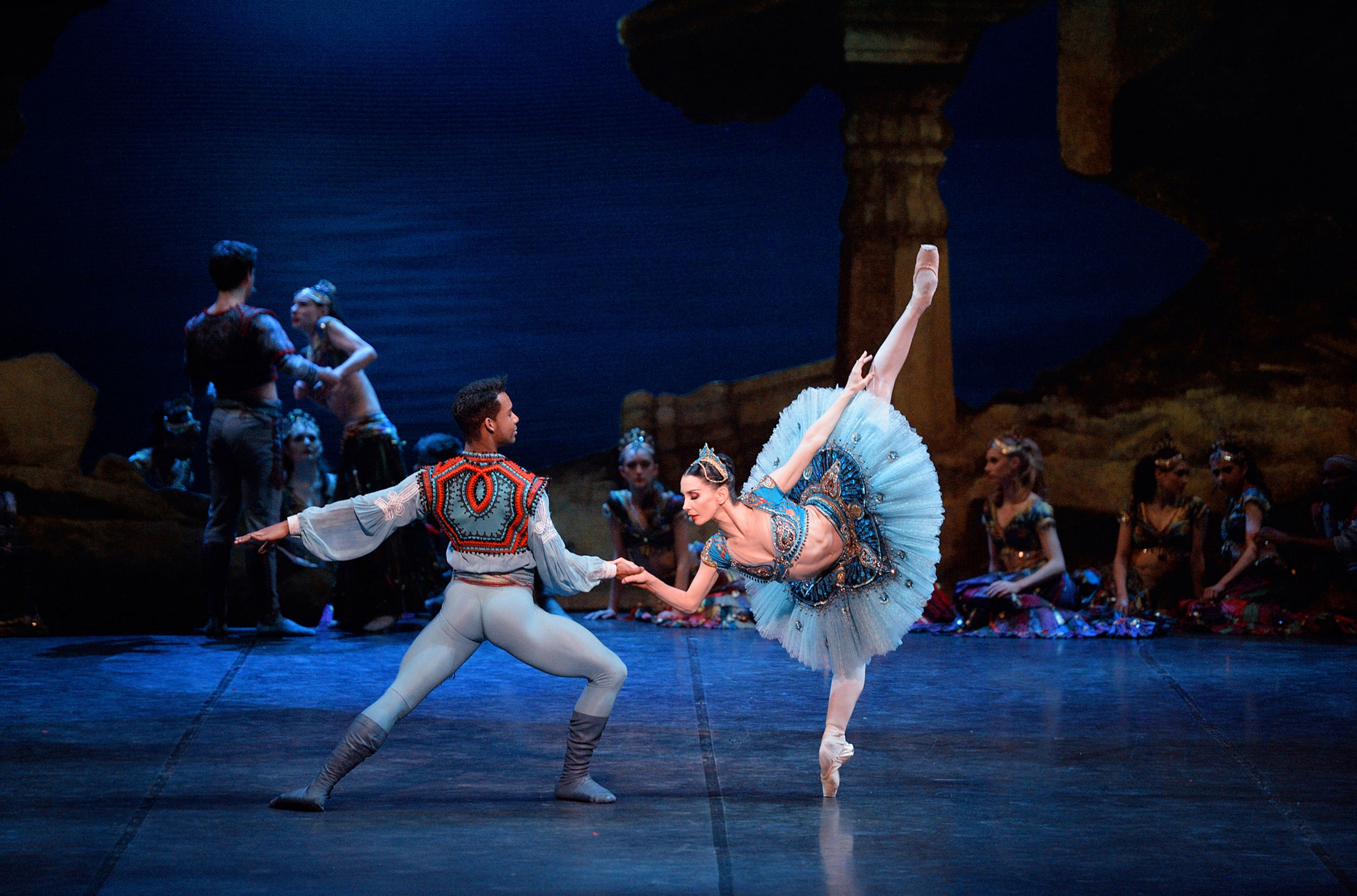 Staging basically means that I go from one ballet company to another and teach all of the dancers in the company, including principals, soloists, and corps de ballet, about the story of Le Corsaire, and pass on my knowledge of all the choreography, mime, floor patterns, etc. so that it can be performed by a new company. I have been working with English National Ballet’s Artistic Director, Tamara Rojo, and Principal Repetiteur, José Martin, on this production. We have changed certain things like the costume and set designs, which gives the ballet a new flavour, but it still tells the same story of Le Corsaire – Conrad the pirate, Conrad, who is in love with a beautiful girl, Medora.