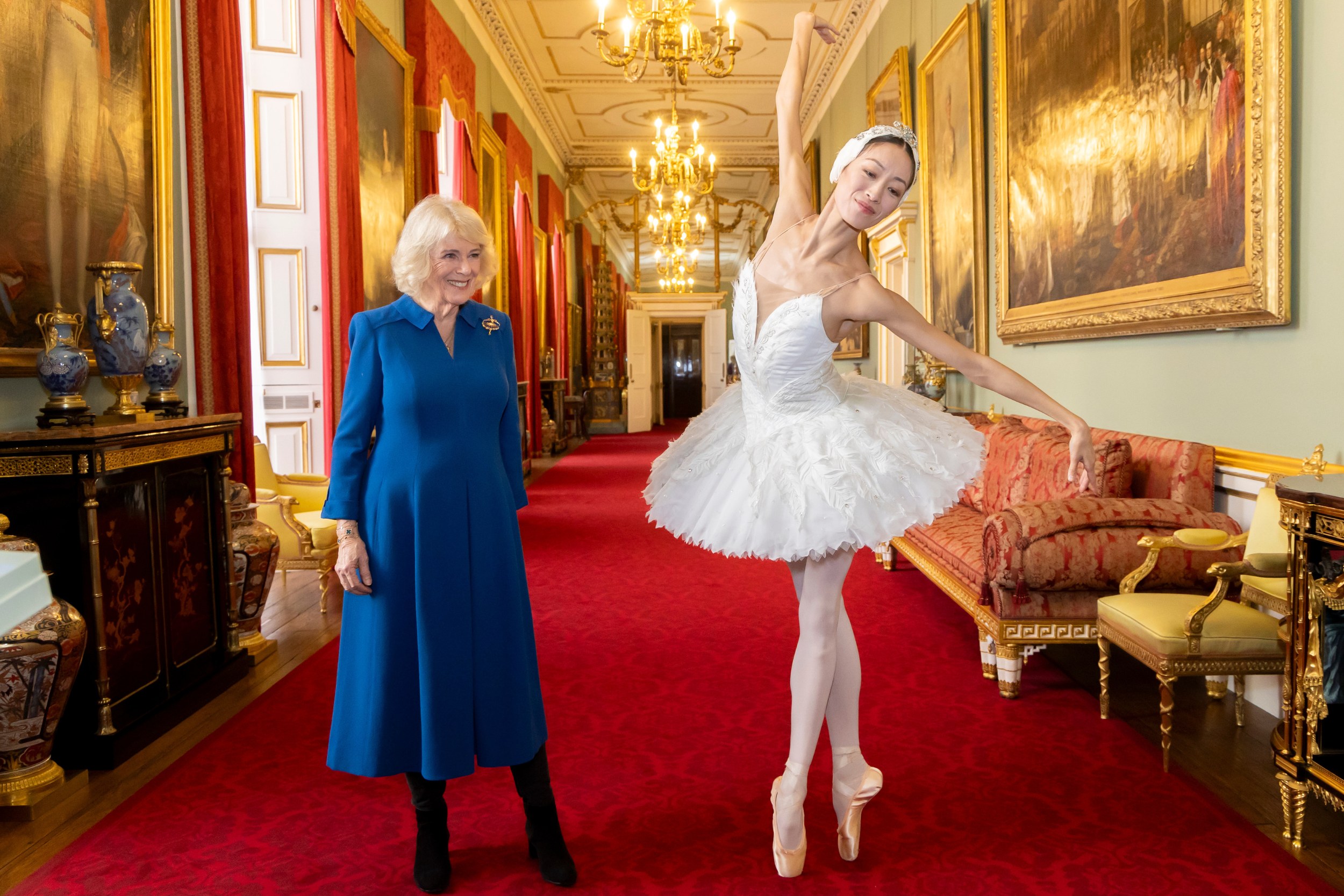 This week, our Royal Patron Queen Camilla met guests including Lead Principal Sangeun Lee, members of English National Ballet Philharmonic, representatives from our Dance for Parkinson’s and ENBYouthCo programmes, and Company supporters Dame Arlene Phillips DBE and Angela Rippon CBE.