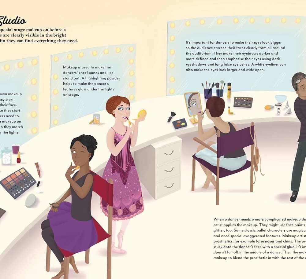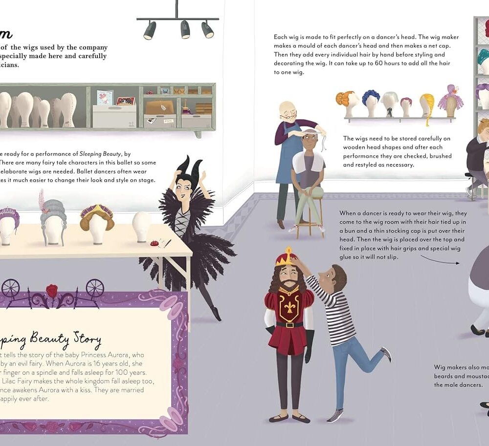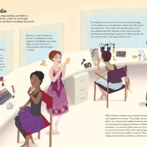 Discover how stunning costumes are designed and see the thousands of shoes stored in the shoe room. Watch the dancers put on dramatic makeup, elaborate wigs and headdresses to create their characters. Discover the magic and wonder of performance night as the dancers prepare to dance Swan Lake. As you turn the pages you’ll read the stories of other famous ballets such as The Nutcracker and The Firebird.