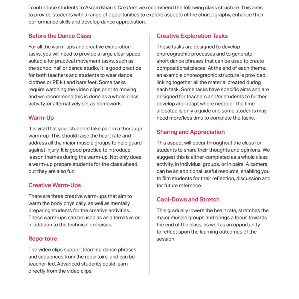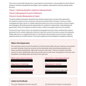 - Creative exploration tasks to help students understand the work, as well as develop choreographic skills