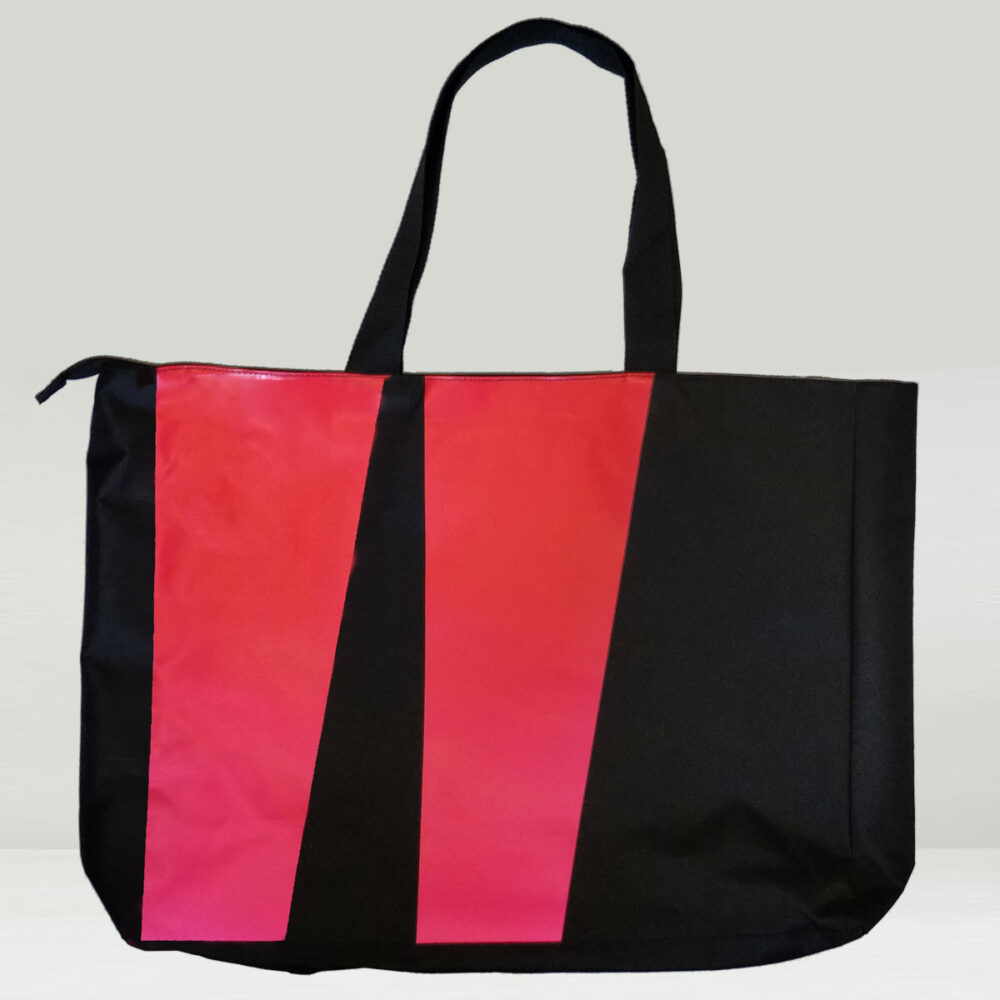 Large black tote bag, featuring the Company logo in pink and red vinyl on the outside.