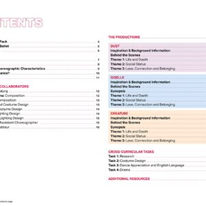 - A comprehensive analysis of movement for each theme to aid dance appreciation, highlighting actions, space, dynamics and relationships