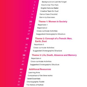 - A detailed breakdown of three main themes that feature within the work, including videos to learn and teach repertoire (simplified and advanced versions), plus four creative exploration tasks to help students understand the work as well as develop choreographic skills. Includes learning objectives and developments for each task.