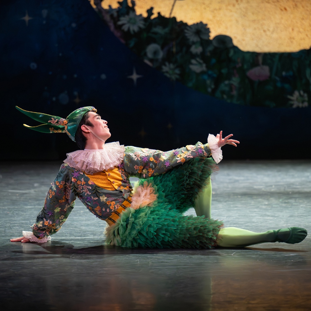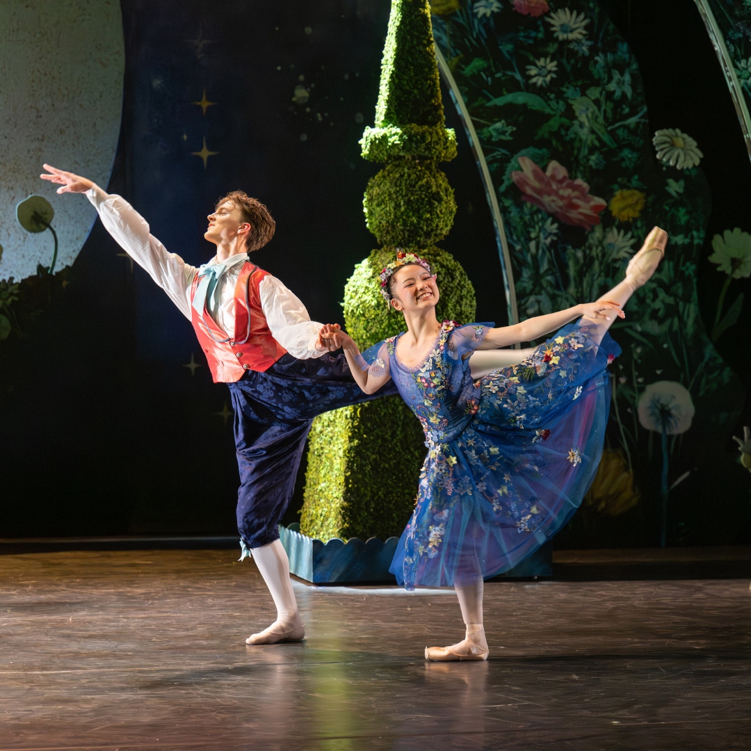 The palace garden is alive with music and dancing, filled with guests all hoping to impress the Prince. The Stepsisters’ disastrous efforts backfire. Overwhelmed, the Prince slips away into a quieter part of the garden.