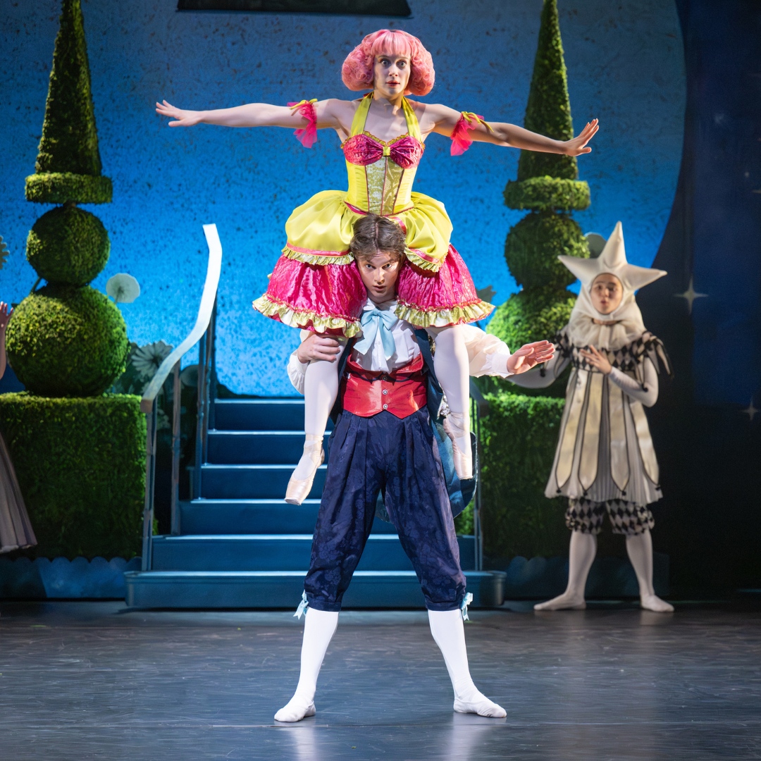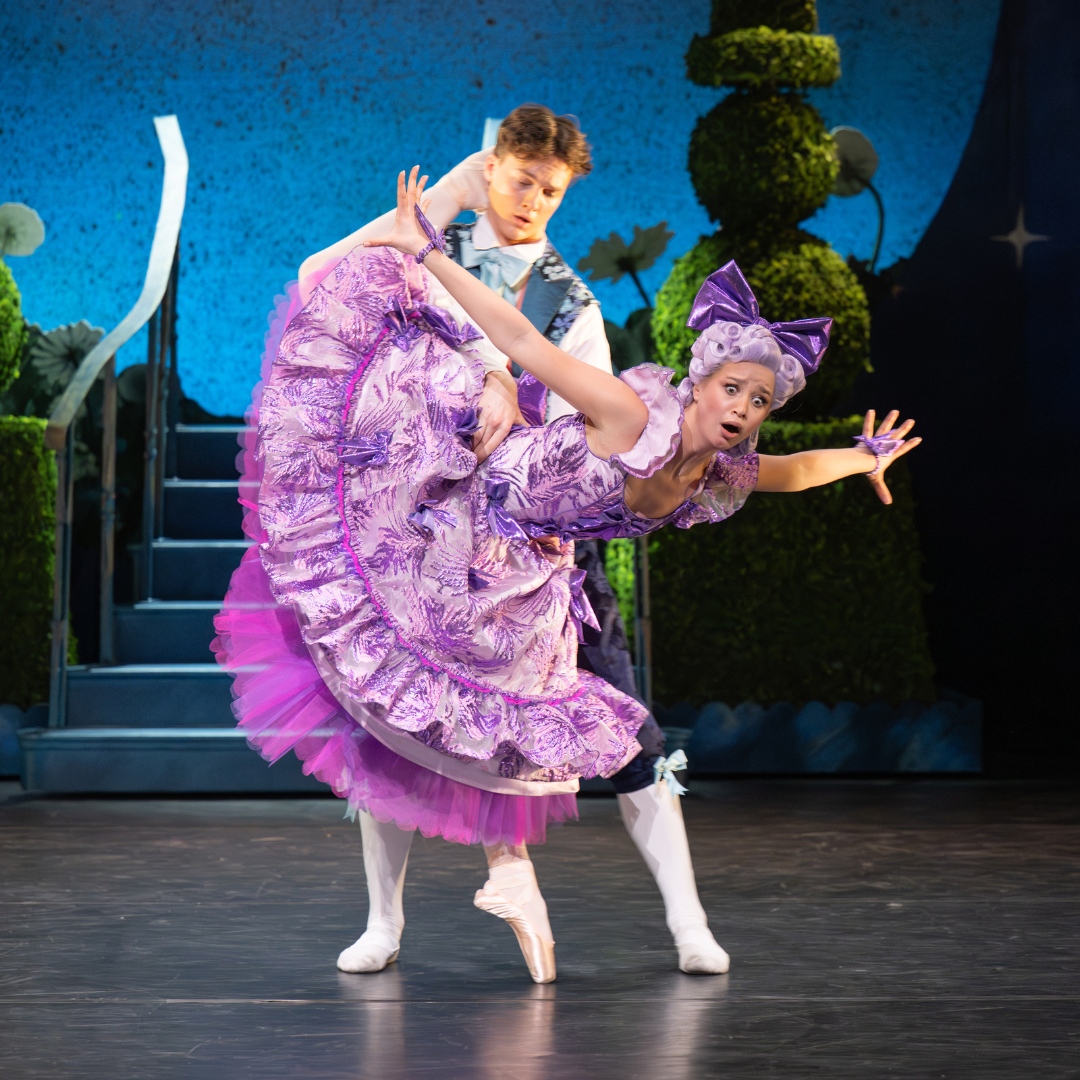 Not long after, an invitation arrives for Prince Rowan’s Garden Ball, celebrating all who love nature. The Stepsisters are delighted, but Ella is told she cannot go. As the family prepare, the Stepsisters try on outfits and take a dance lesson that quickly turns to chaos. At last, they leave for the palace and Ella is left behind.