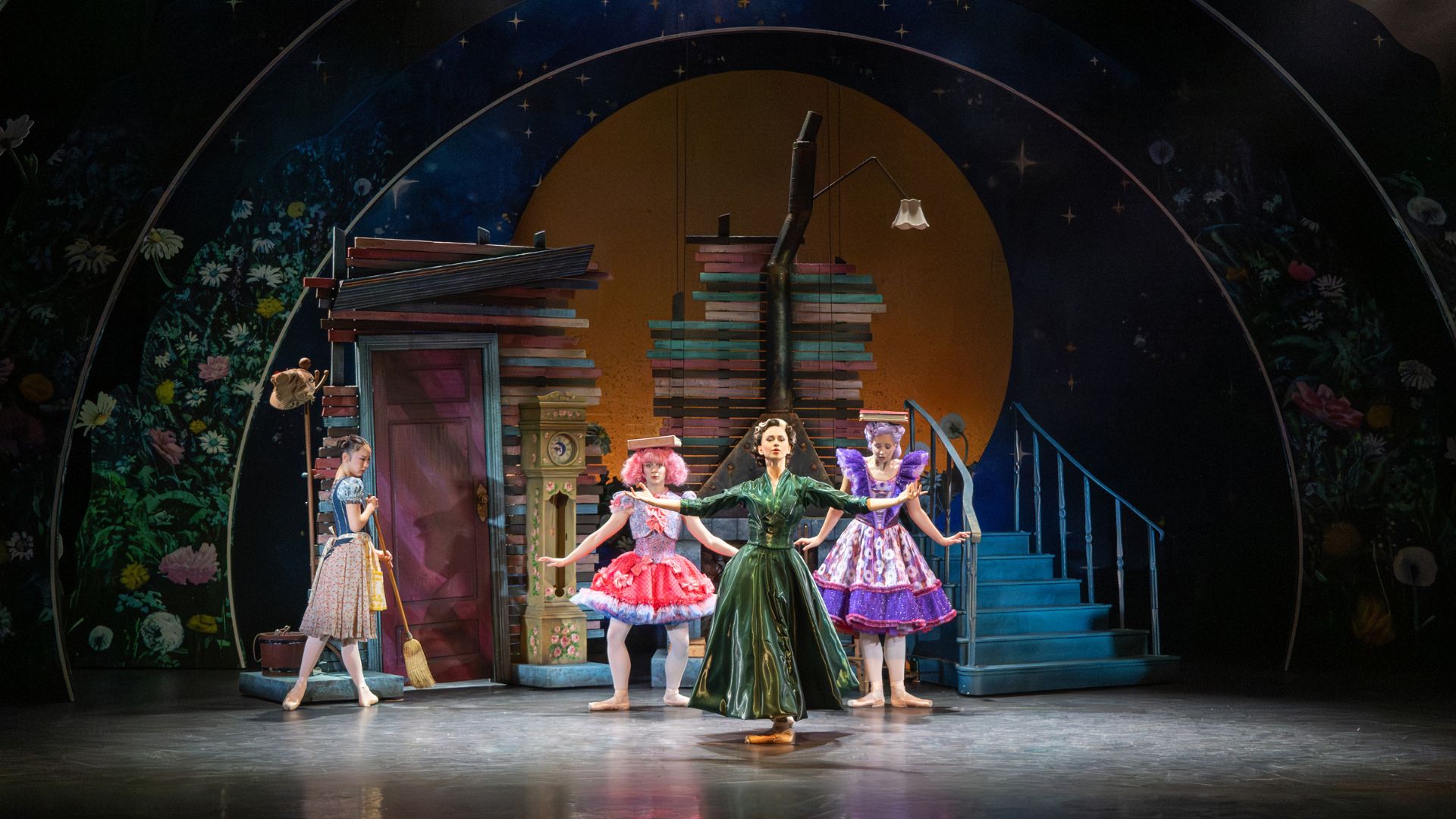 Alone, Ella dances with the Scarecrow once more, imagining herself at the Garden Ball and wishing she could be there. The Woman from the Woods returns and reveals herself as Ella’s Fairy Godmother. As she speaks, the world around Ella starts to change…